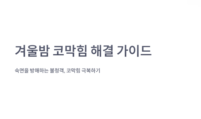 이번 포스팅에서는 겨울밤 코막힘의 원인과 해결 방법을 자세히 알아보고, 다시 편안한 숙면을 되찾을 수 있는 다양한 정보를 살펴보기로 합니다.