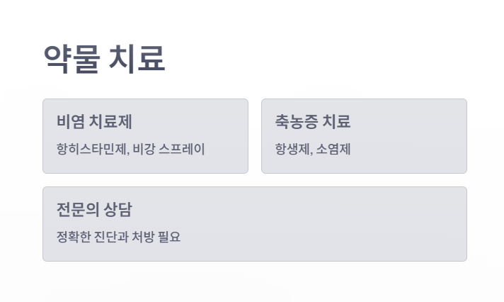 - 약물 치료: 비염, 축농증 등의 질환이 있는 경우에는 전문의와 상담하여 적절한 약물 치료를 받습니다.