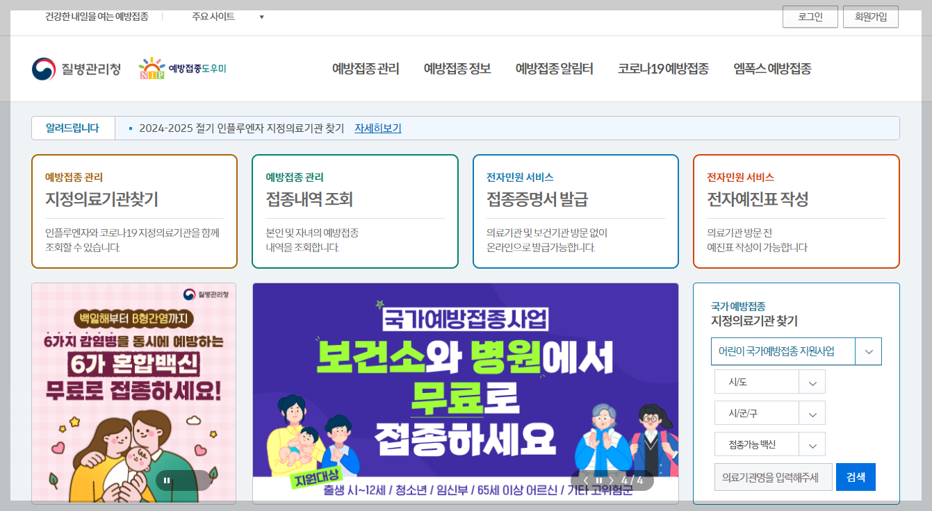 참고로, 질병관리청 예방접종도우미 사이트에서 가까운 예방접종 기관을 찾아 보세요.