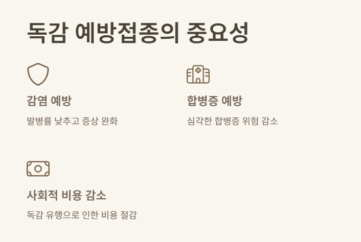 - 사회적 비용 감소: 독감 유행으로 인한 사회적 비용을 줄이는 데 기여합니다.
