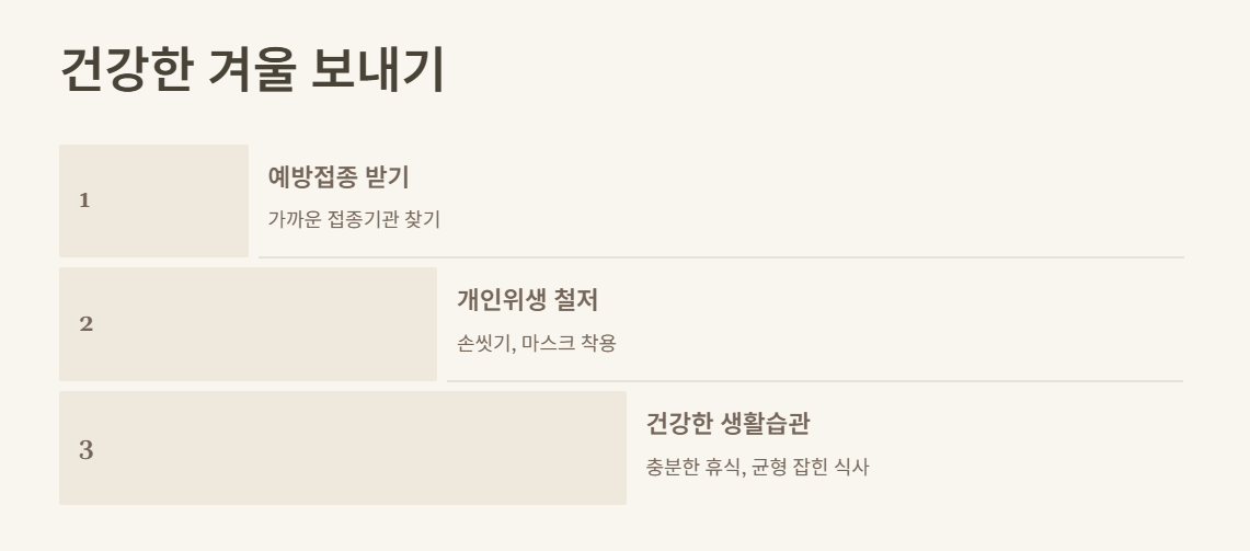 올해 겨울에도 독감 유행이 예상되는 만큼, 미리 예방접종을 받아 건강한 겨울을 보내시기 바랍니다. 특히 고위험군에 속하는 분들은 반드시 예방접종을 받아 자신을 보호하고 주변 사람들에게도 전파를 막는 데 기여해야 합니다.