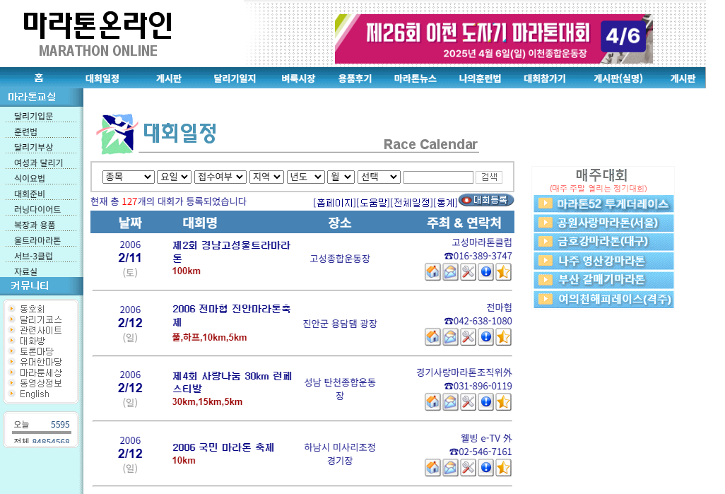 국내 마라톤 대회일정 - 마라톤온라인(Marathon Calendar in Korea)